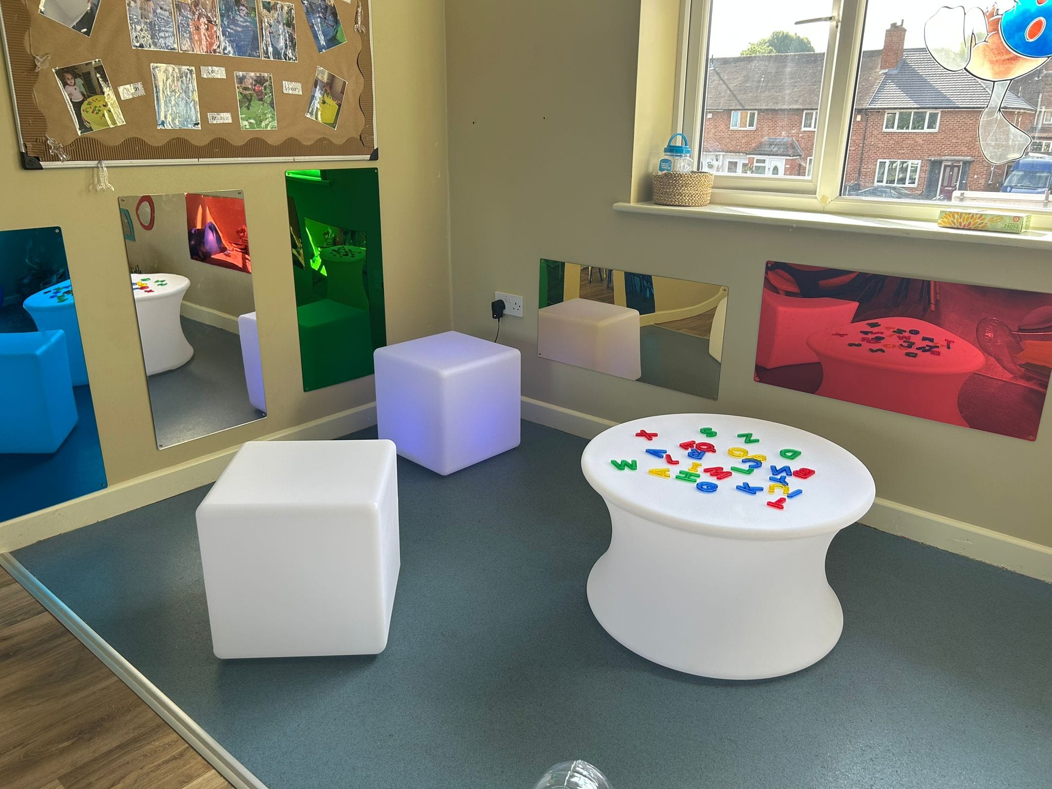 Sensory rooms our settings benefit our children by promoting emotional regulation, cognitive and motor skill development and social skills in a safe environment. They provide a calming space for children who are overwhelmed and need support as well as help with sensory stimulation. Some of our setti